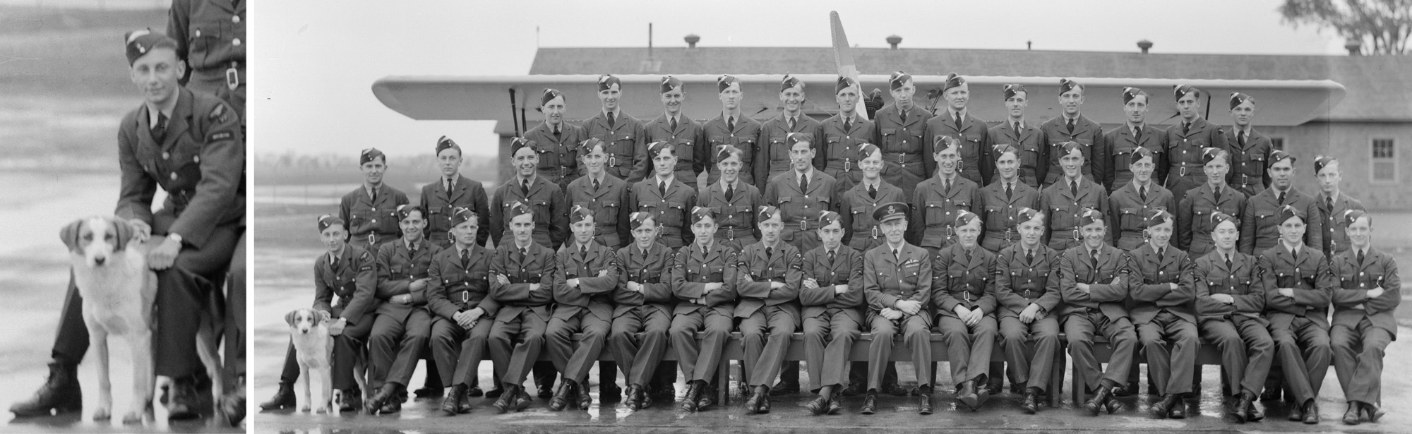 We’re not sure, but based on appearance, we suspect the dog in the Class 21 photo might be Hank Henry’s dog, because we know he had a fox terrier with him on base. Henry was one of the original seven instructors posted to No. 12 EFTS, and one of his fellow instructors, Herbert Davidson, recounts in his memoir that his dog accompanied him on instructional flights: