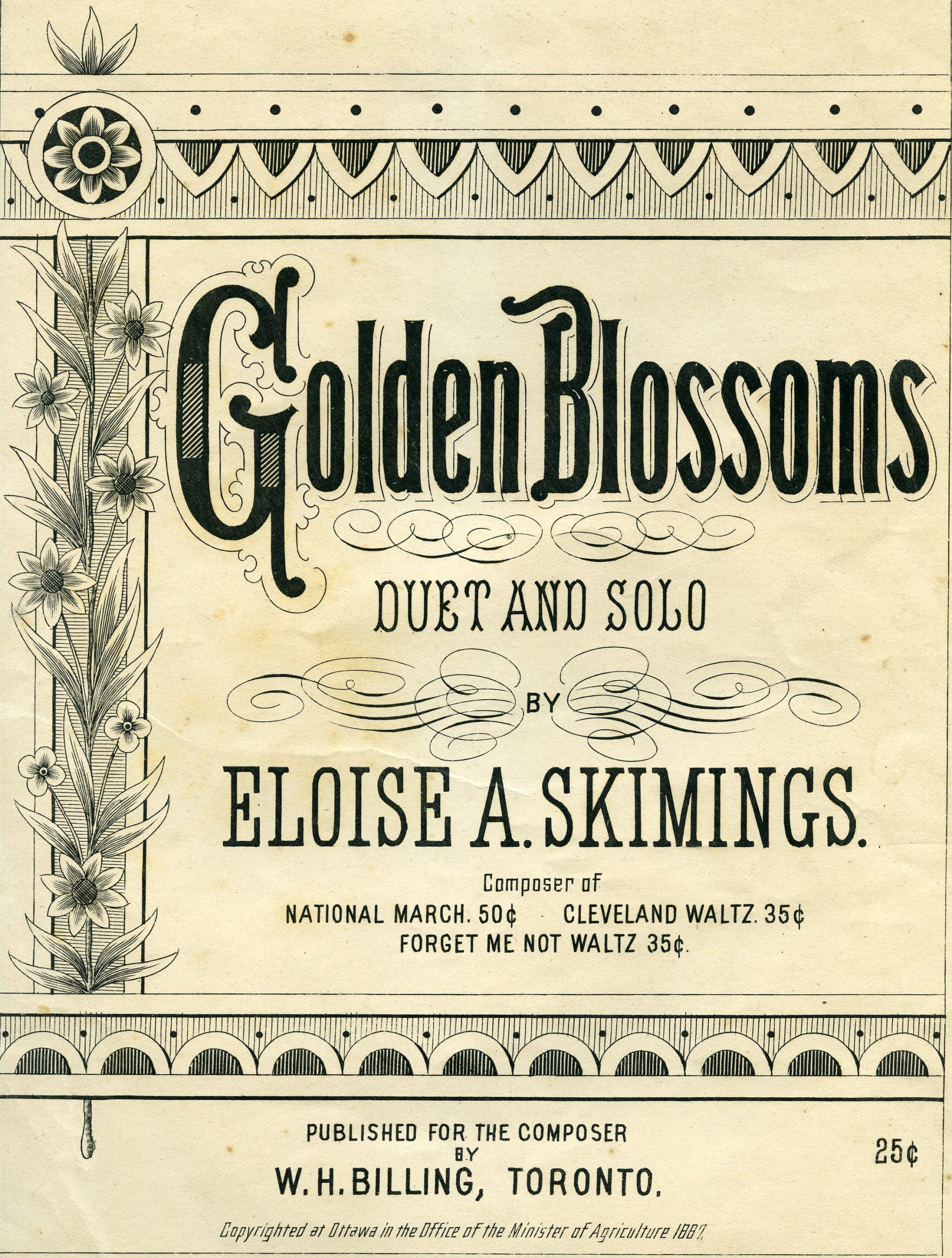 Also a music teacher, she composed and published music such as I think of Thee, Alice, National March, Forget Me not Waltz, and Golden Blossoms.