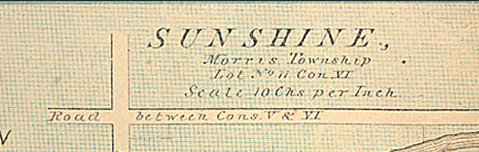 Sunshine was located at the intersections of Huron County Road 16 (Morris Road) and Martin Line. The cemetery is located a short distance down Martin Line. Sunshine is 8km west of Brussels, 15 km southeast of Wingham, and 12 km northeast of Blyth.