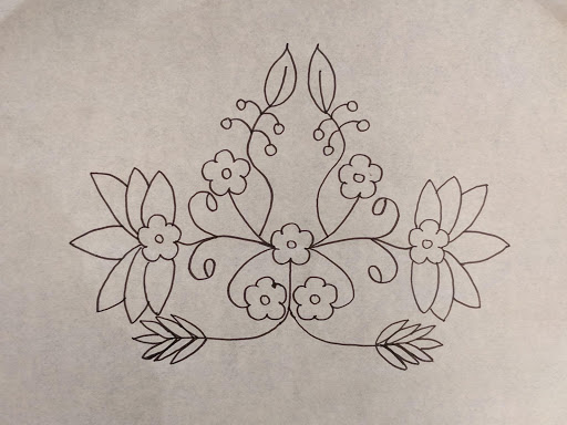 I use 15/0 glass seed beads (for the bigger pictures to get more detail). For the singular flowers I mostly use 11/0 glass seed beads, but i mix them sometimes with 15/0 seed beads, 10/0 seed beads, and 11/0 delica seed beads. For the substrate I use 100% polyester felt (more recent ones are made with a stiff felt – as are the big pieces), and either nylon, polyester, and/or cotton thread (I prefer nylon and cotton over polyester for thread because they do not tangle as much), and a 16/0 beading needle. I draw on tracing paper and bead over it. Once the beading is done, I remove the paper as much as possible/visible.