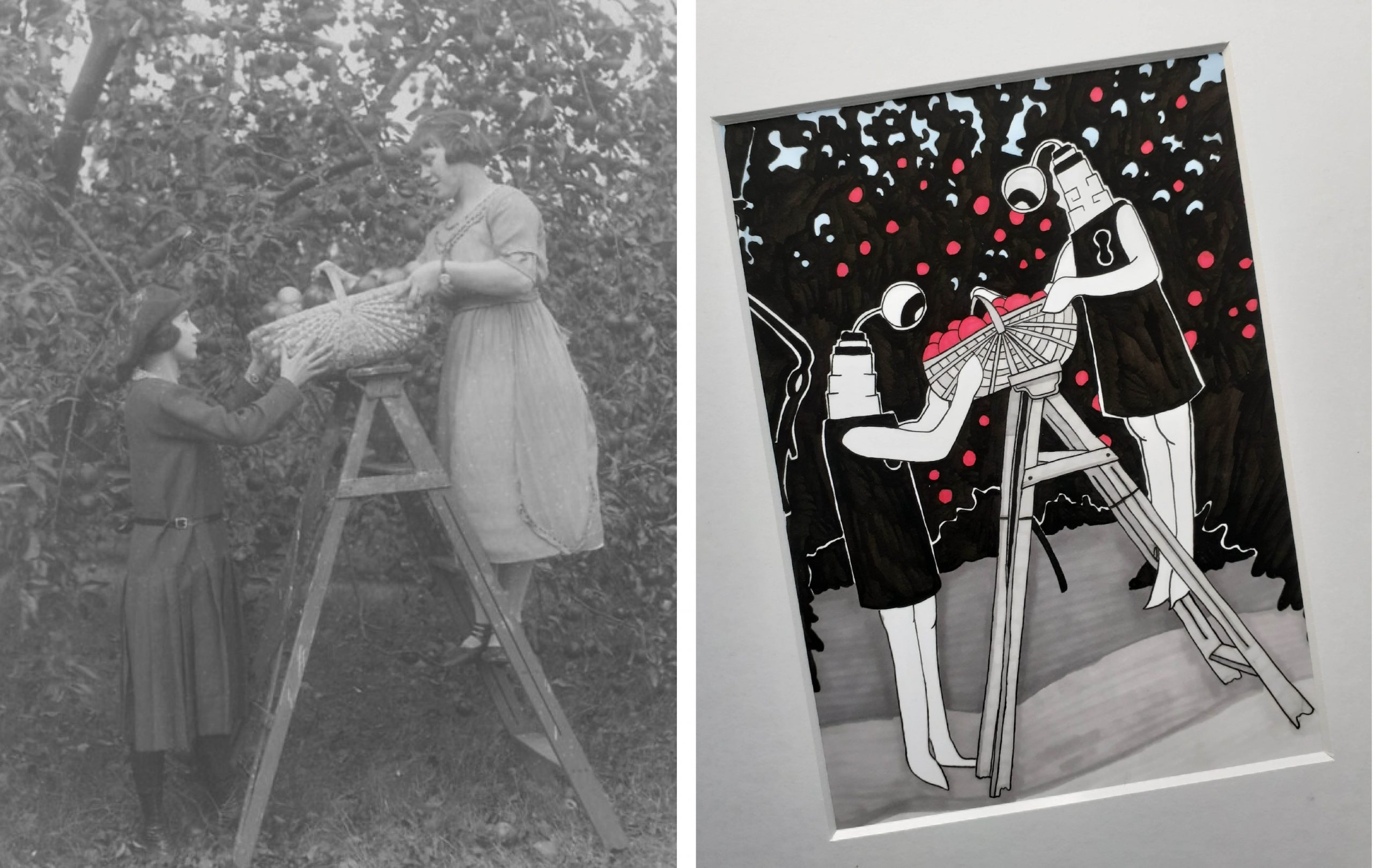 Artist Kelly Stevenson was inspired by this Reuben Sallows photo from the Museum’s collection, at left, to create this illustration, at right.