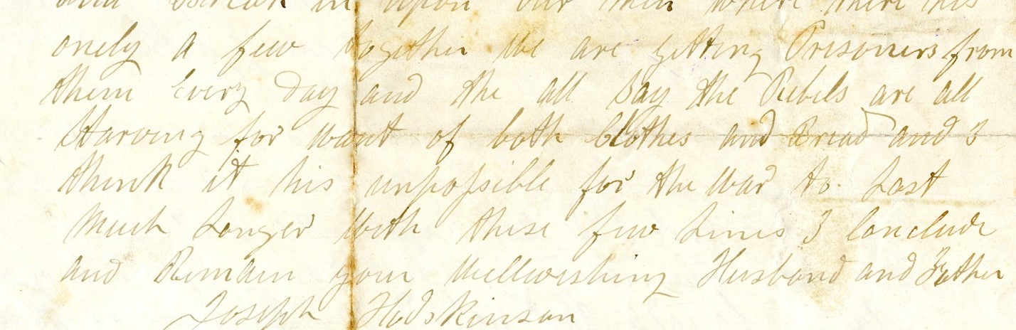 We are getting prisoners from them every day and they all say the Rebels are all starving for want of both clothes and bread and I think it is impossible for the war to last much longer.” – excerpt from a letter dated Jan. 2, 1863