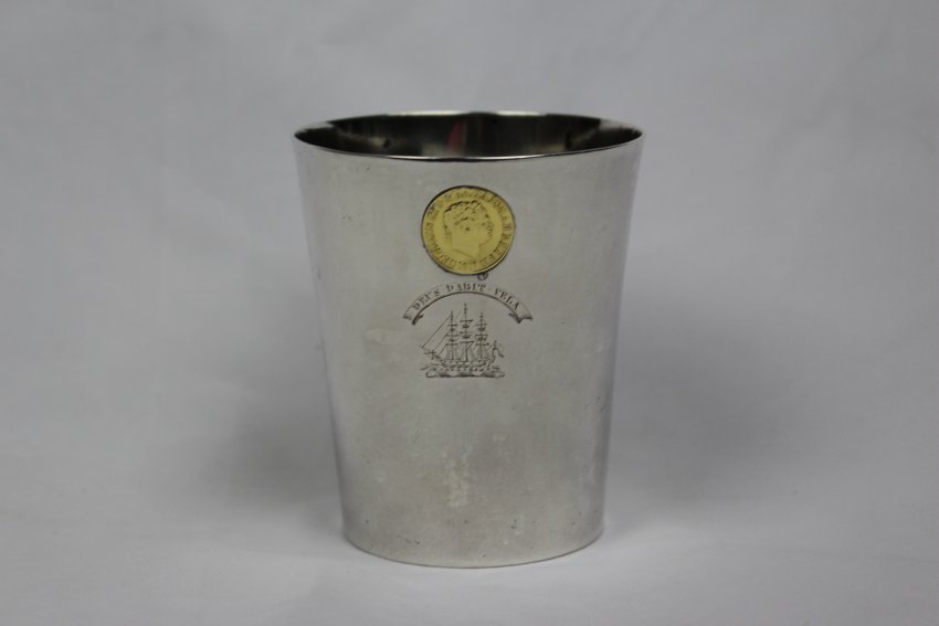 - Cataloguing William “Tiger” Dunlop’s silver cup with an 1817 gold sovereign inlaid in it. The silver cup was left to Tiger’s sister Janet in his will and, having been passed down through generations, it finally made its way to the Museum.