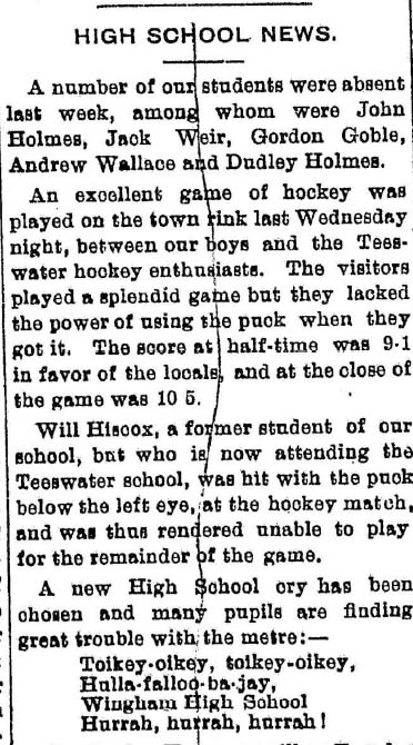 High School News published in the Wingham Times, Feb. 11, 1909.