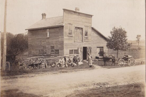 Above: Herb Wheeler’s Carpentry Shop in Belgrave, ON. Herb is seen standing in front (Photo courtesy of Richard Anderson).