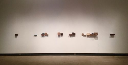 Shelf Life (2017) Assortment of boxes This piece takes up the span of the long wall. The eclectic boxes are a stand in for the discovery process that a person experiences in the museum. Visitors are encouraged to take their time opening the boxes and looking for things that might have been left behind.
